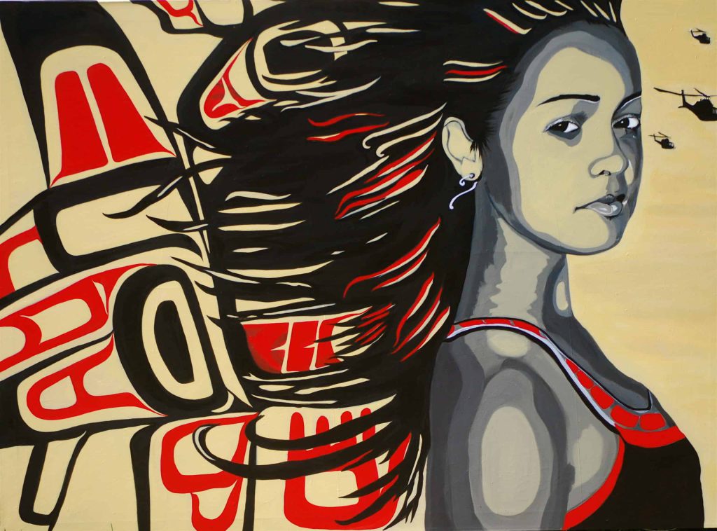 “I have a painting called ‘First Contact’, and it’s of an Indigenous woman, and her hair is tied into her culture,” she says.