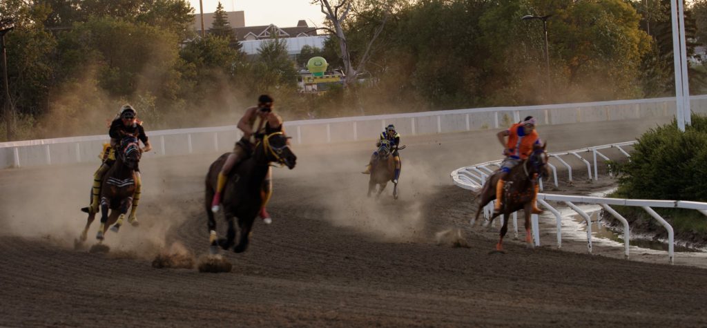 The Calgary Stampede website describes Indian Relay Racing as “a high-adrenaline event that requires a powerful combination of teamwork, precision and horsemanship.”