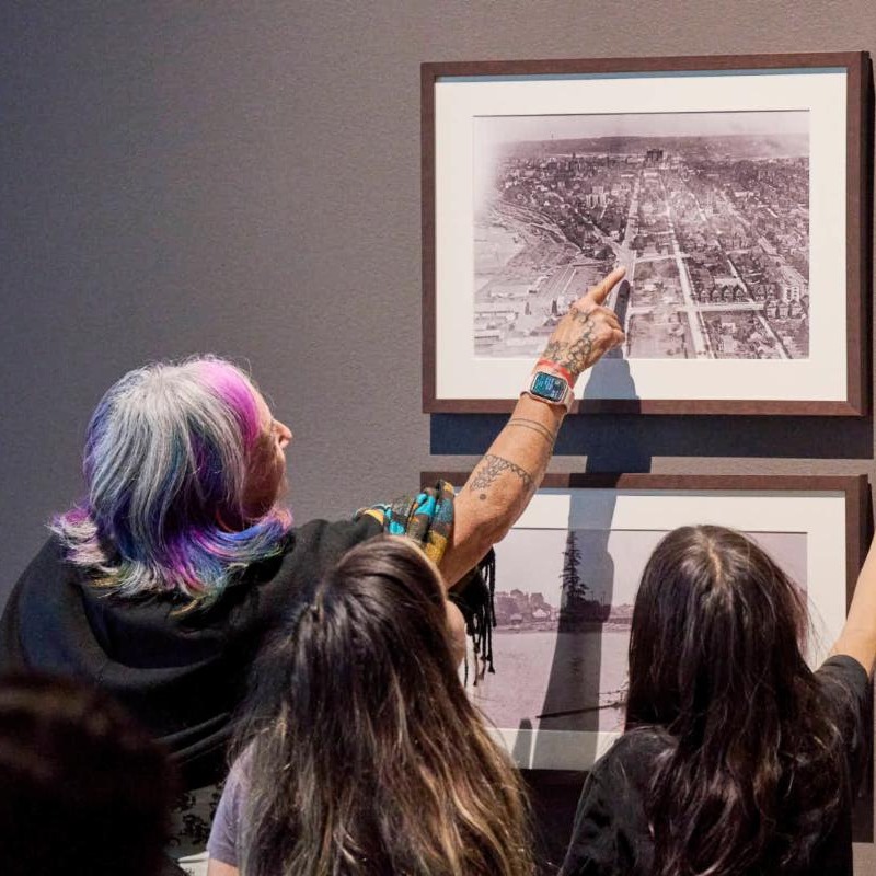 “The border created divisions and conflicts between our communities and within our family,” said Sḵwx̱wú7mesh storyteller and artist T’uy’t’tanat Cease Wyss, one of the exhibit’s Indigenous curatorial collaborators.