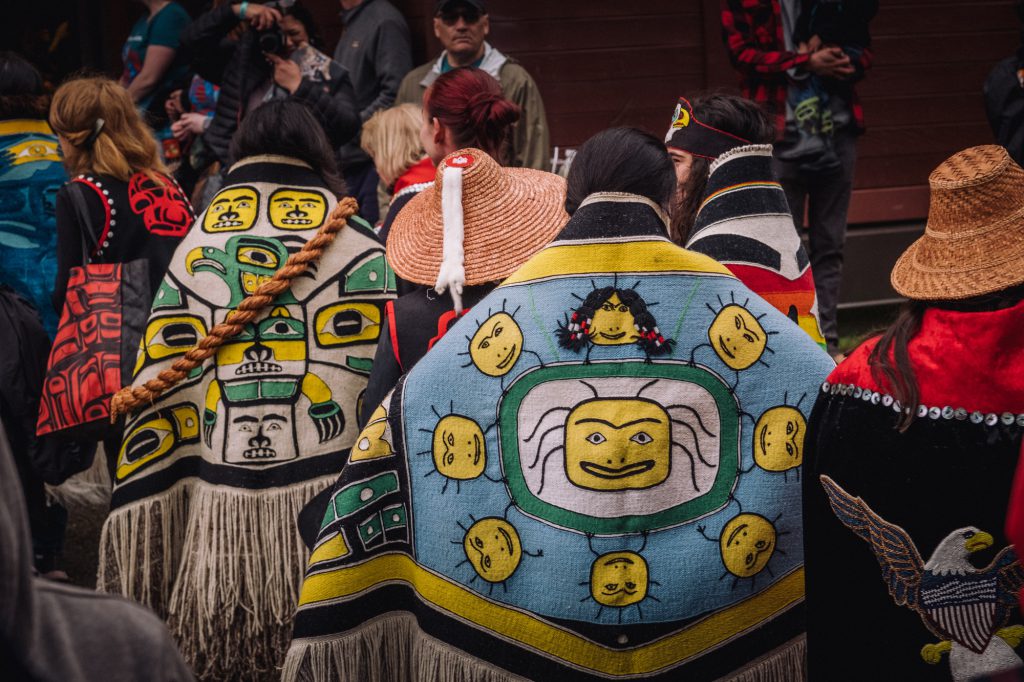 The robes were danced ceremonially in “Juneau” in April, marking the largest collection of Ravenstail robes to be danced together since colonization of Tlingit territories.