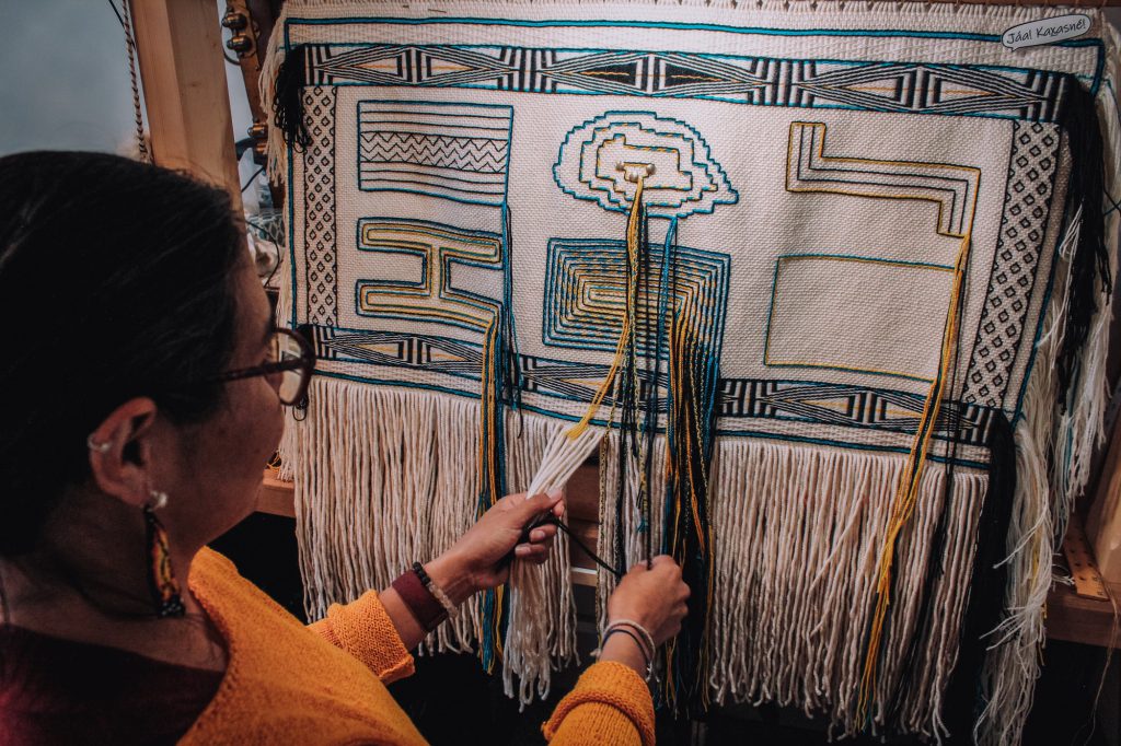 “Weaving is therapeutic, centring,” says Jackson, an apprentice under master weaver Lily Wooshkindein Da.áat Hope.