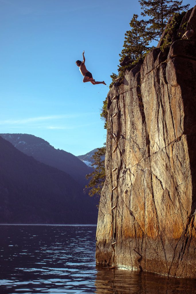 Jonny Williams squeezes into a soaped-up wetsuit near the base of Tsewílx̱ (the Tantalus Range) — a series of 2,000-plus-metre peaks that give rise to the region’s moniker, Sea to Sky. The water he slips into is like glass, an unexpected gift in a glacier-etched fjord known to funnel high winds.