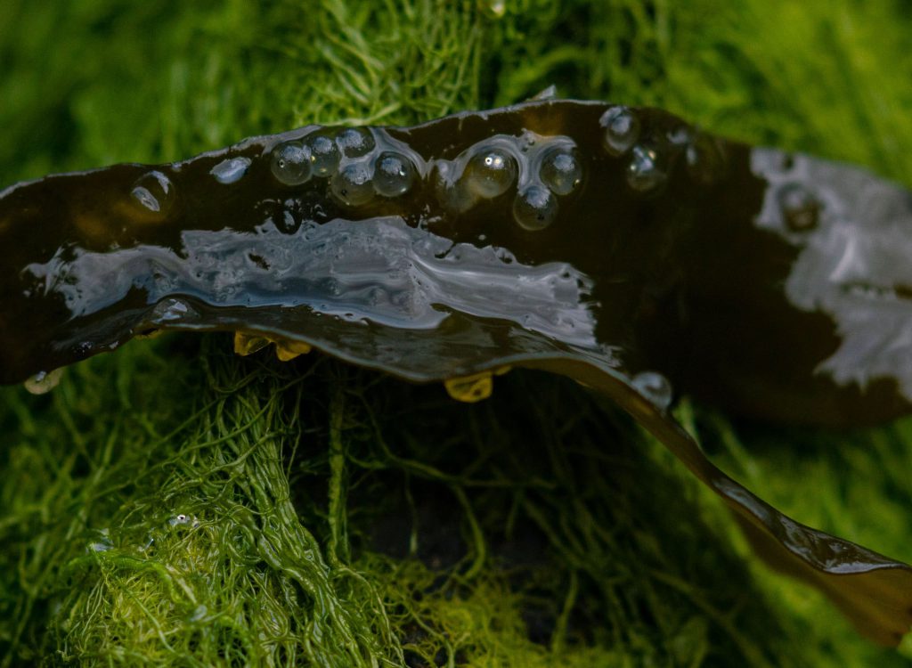 “See the spawn?” Van Oostdam asks, gesturing to the rockweed.