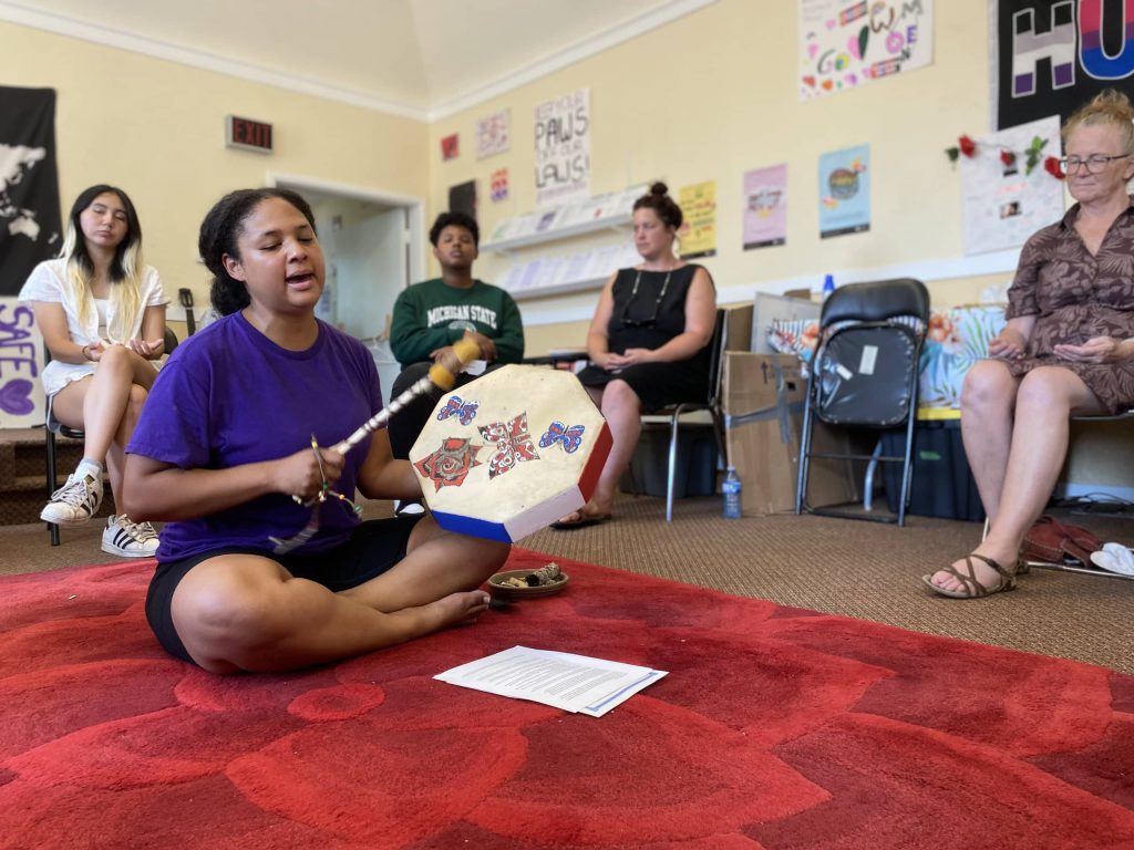 “It doesn’t take thousands of dollars to be inclusive or thoughtful,” begins Johnny, as she welcomes Youth and other community members into the circle. The room is saturated in messages of empowerment as Youth are offered a smudge as Johnson begins to sing.