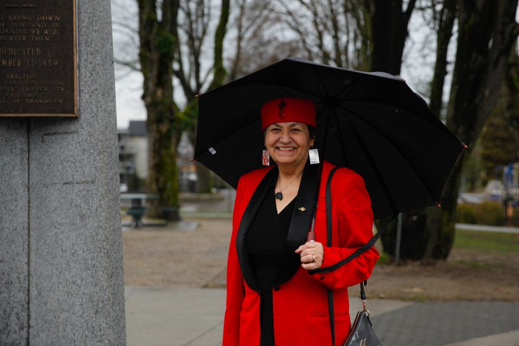 Standing at the Cenotaph in Grandview Park, just off Commercial Drive, on a drizzling spring day, Phillip’s vibrant attire stood out against the dreary East “Vancouver” backdrop.