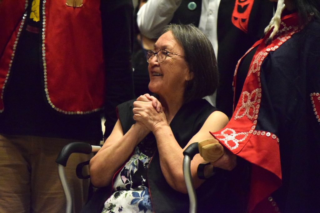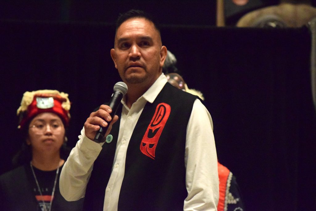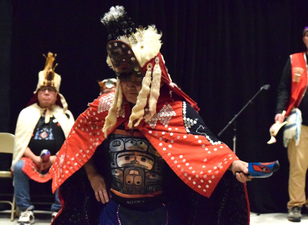 Samuel Schooner, elected chief of Nuxalk Nation, said he felt emotional watching Nuximlayc Pootlass dance as he pictured many generations of ancestors before them.