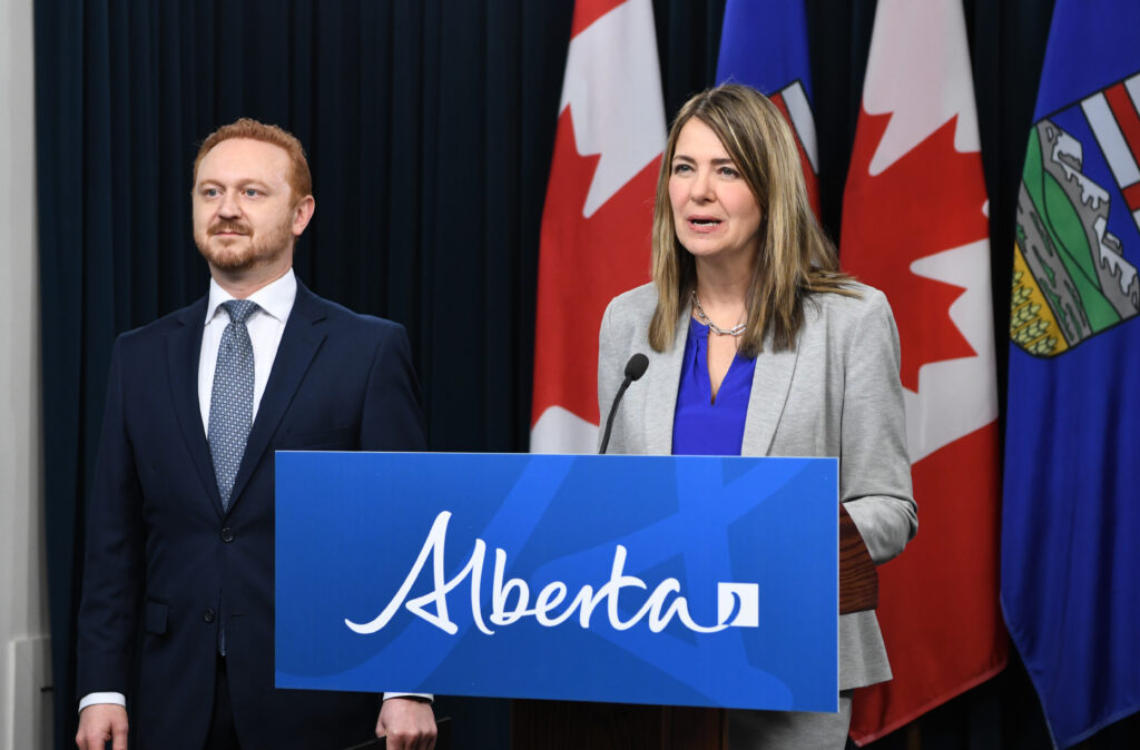 ‘Alberta’ Premier Danielle Smith (right) makes an announcement with Justice Minister Mickey Amery in Edmonton on March 30. Photo courtesy Chris Schwarz/Government of Alberta