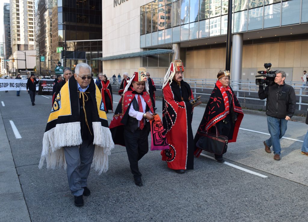 To bring renewed attention to the issue, a group from Gitxsan marched from the steps of the Vancouver Art Gallery, briefly blocking traffic, to the court downtown on Oct. 11.