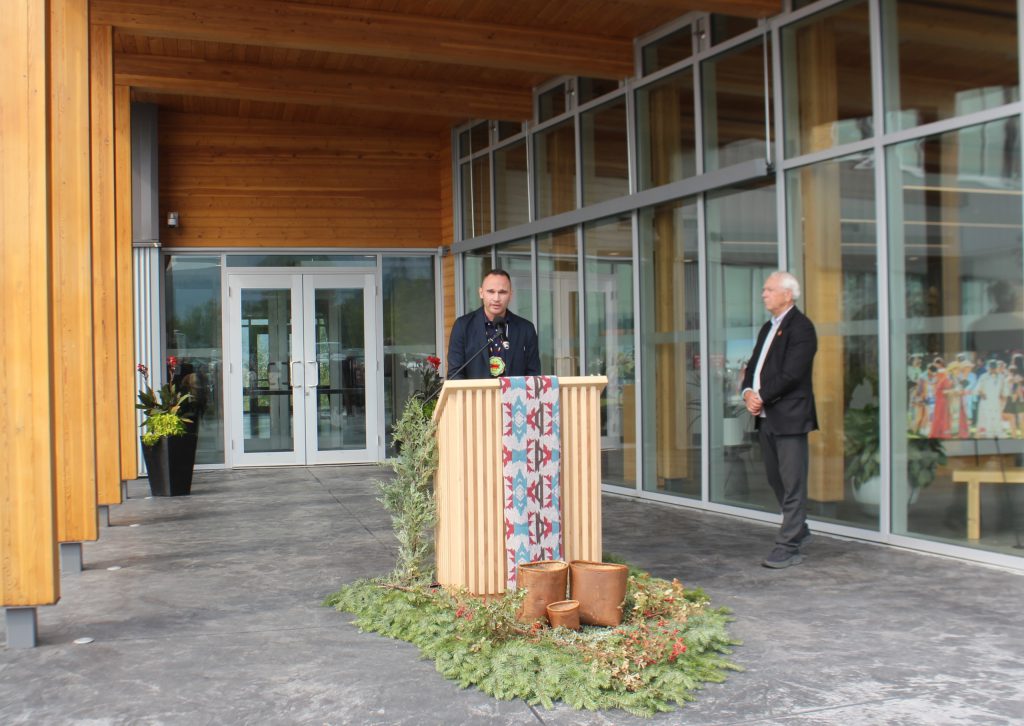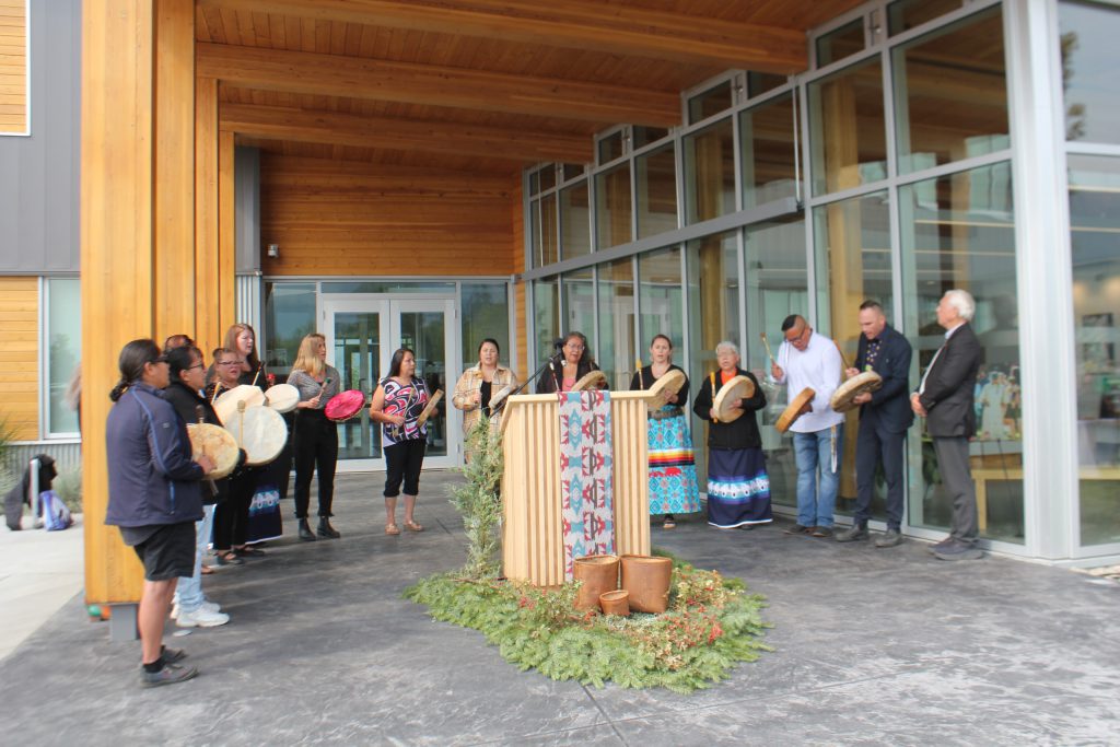 Before the announcement was made, drummers opened the event with the Mitchell Honour song. Elder Jean William said a prayer in Secwepemctsín and welcomed visitors.