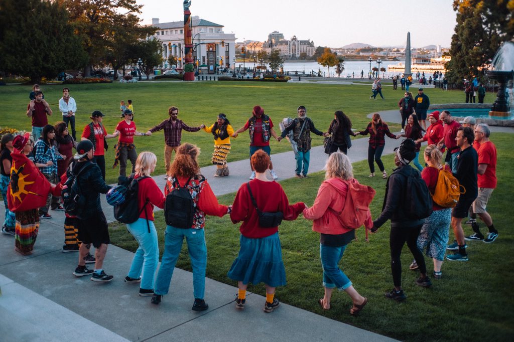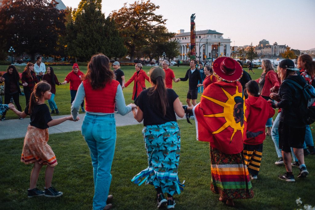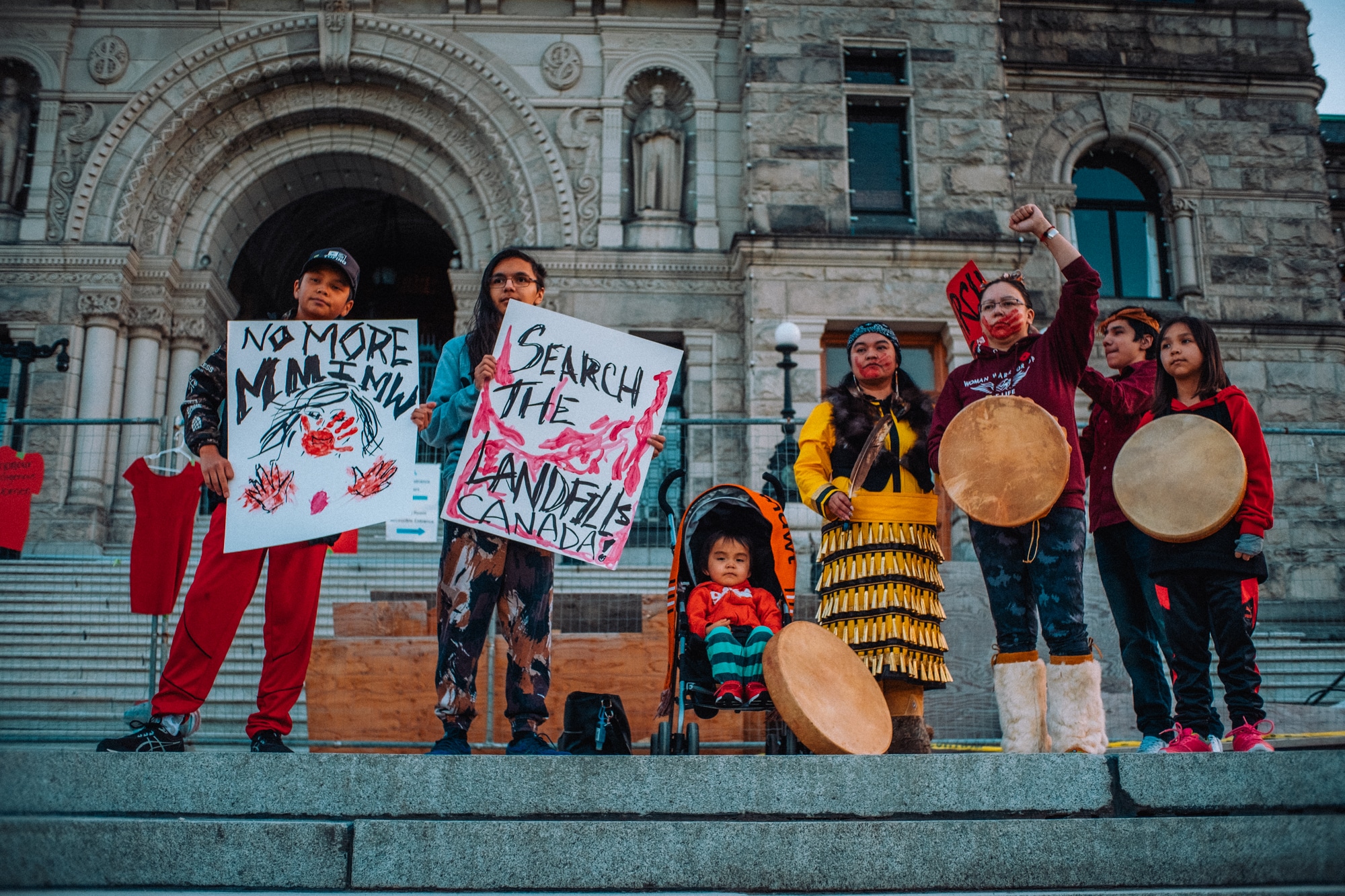 People gathered in ‘Victoria’ and cities across the country on Monday as part of a day of action to find the remains of Morgan Harris, Marcedes Myran and other MMIWG2S+