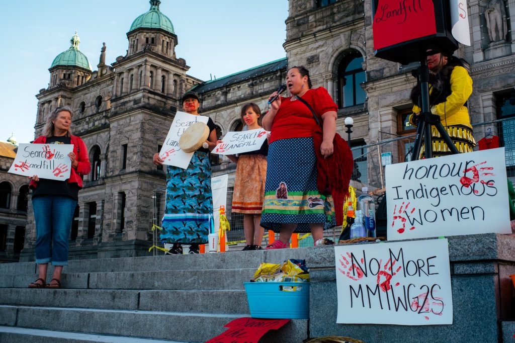 “They said it is unsafe [to search the landfill] due to toxic waste,” said Tsartlip woman Priscilla Omulo, who organized the rally at the B.C. Legislature. “Well, I would like to say that the harmful and fatal toxic waste is anti-Indigenous racism, and that’s the foundation of the injustice of the MMIWG2S and their families.”