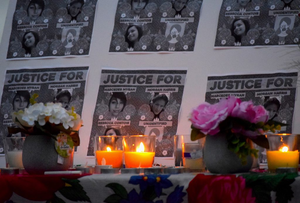 During a vigil in Grandview Park on Sunday, dozens of people came together to mourn the deaths of Rebecca Contois, Morgan Harris, Marcedes Myran and the unidentified Mashkode Bizhiki’ikwe (Buffalo Woman).