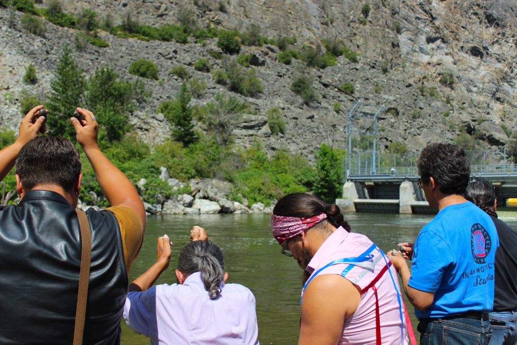 Gathering along the riverbank at nʕaylintn (the McIntyre Dam), people said prayers for the return of salmon — part of a five-day Salmon Calling Ceremony that’s hosted by the Okanagan Nation Alliance (ONA) each year.
