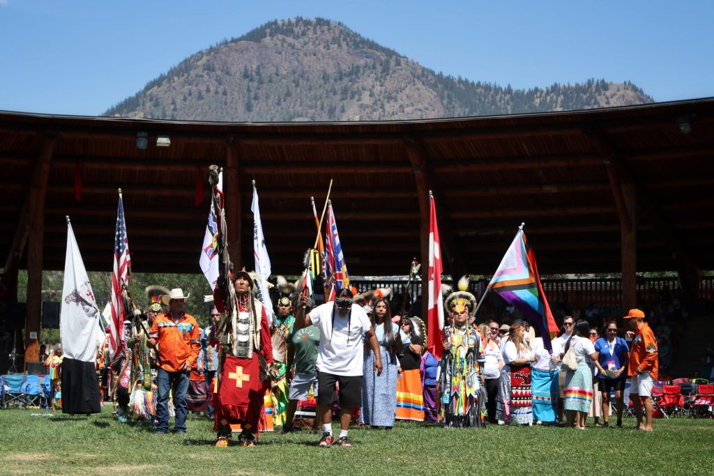 It was the first time the powwow has been held since the community detected 215 unmarked graves of former “students” at the Kamloops Indian Residential School site last year.