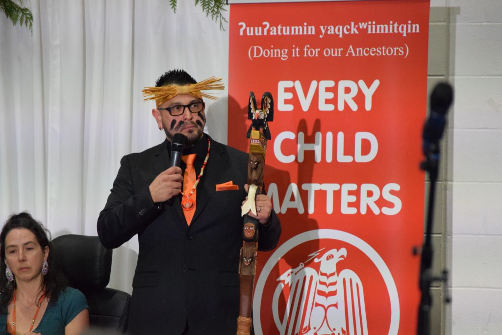 “They’re the ones that are our warriors. They made it through all those troubling times. … So I wanted to acknowledge all of you as survivors and say ʔuušy̓akšiƛeʔic — thank you for surviving. We owe you.”