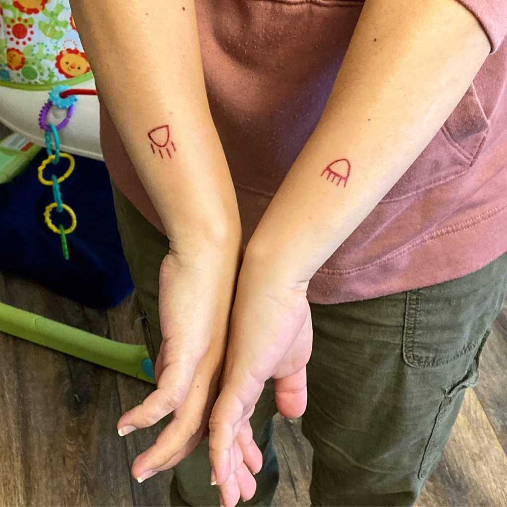 “It really reminded me so much of a pictograph, just the rawness and the roughness of her tattoo,” recalls Louis. “I was like, ‘Wow, I want one of those. How do I get one?’”