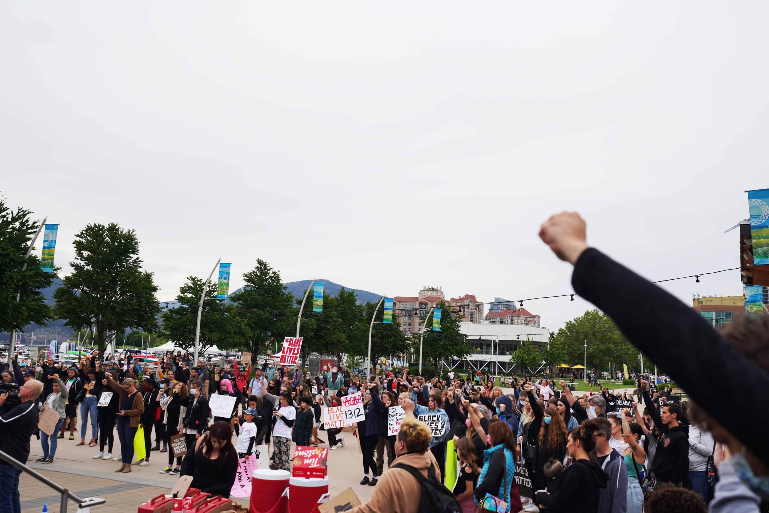 On Friday June 5, 2020, hundreds of people gathered in Stuart Park, Kelowna, B.C. in response to the killing of George Floyd and to raise awareness of systemic oppression, racism and police brutality.