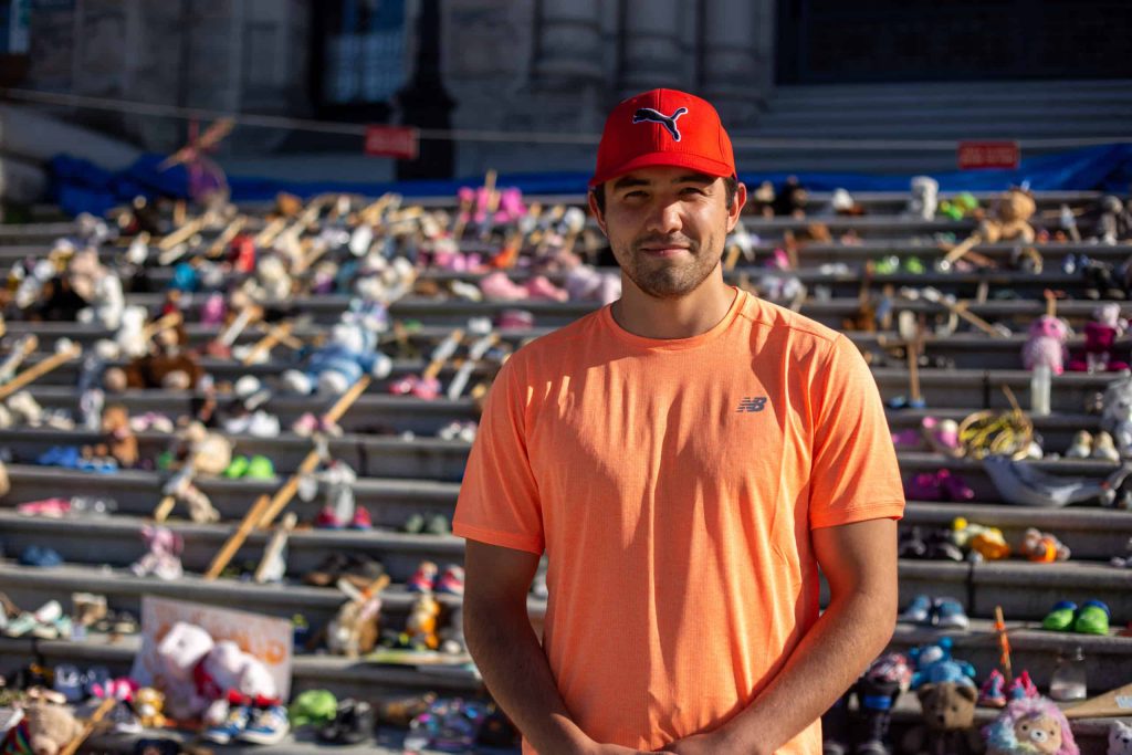 Perron, 26, is Kwakwa̱ka̱ʼwakw from the Da’naxda’xw First Nation. His mother and maternal grandfather and other family members attended a residential institution in Port Alberni. When he first heard the news of the 215 Indigenous bodies buried at the site in Kamloops, he felt a stirring inside of him — he needed to do something.