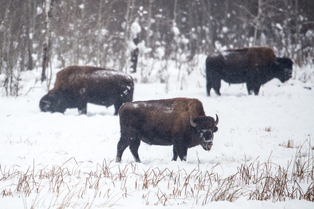 The “Alberta” park hosts two distinct herds — one wood bison, the other plains bison.